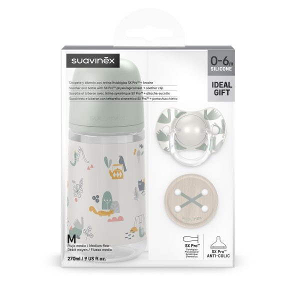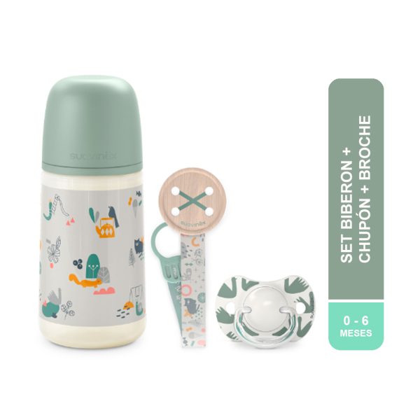 Set Walk Green: Chupón + Biberón + Sujetador de chupón 0-6 m- Suavinex.